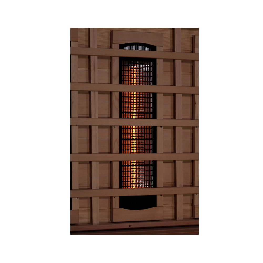 This Full Spectrum 8000 Reserve Series with Himalayan Salt is constructed of 100% Canadian Hemlock Fir and easily assembled by two adults. Heating panels feature PureTech™ Heating Technology that uses NEAR, MID and FAR wavelengths to deliver full spectrum heat while maintaining a near zero EMF standard.