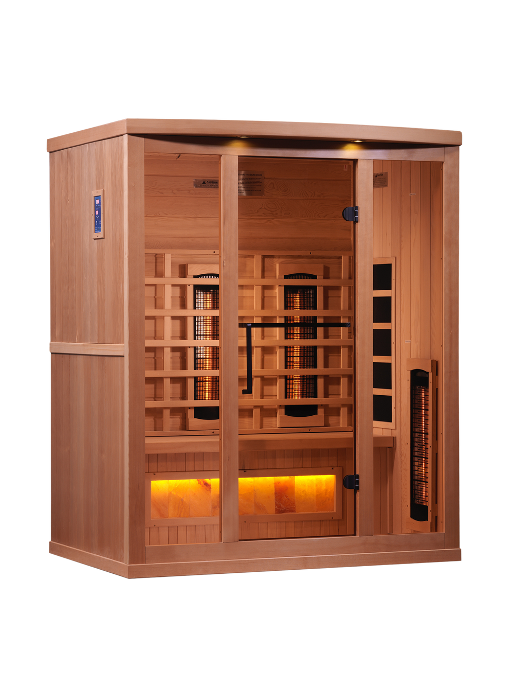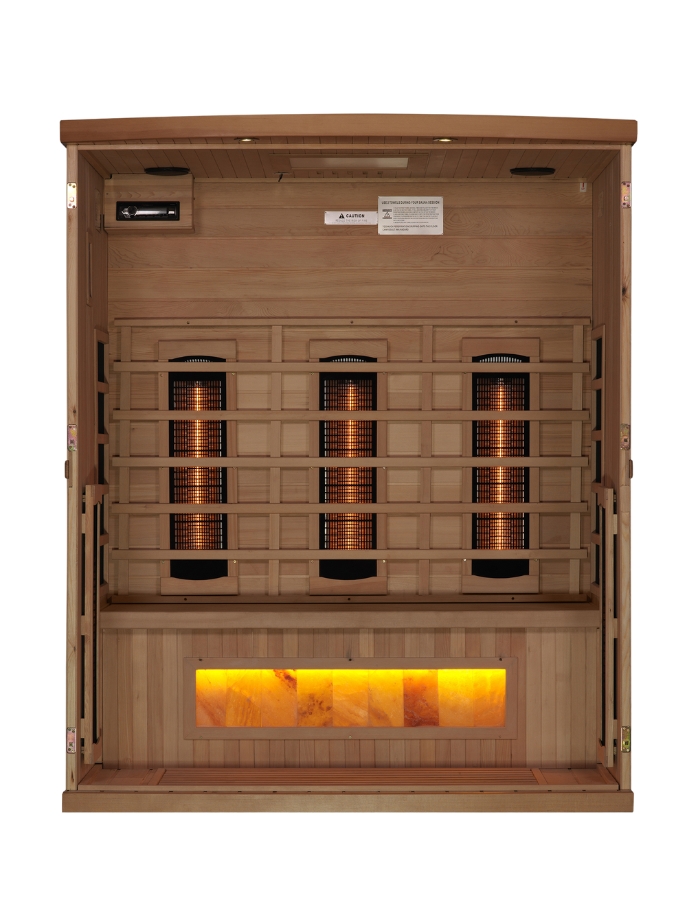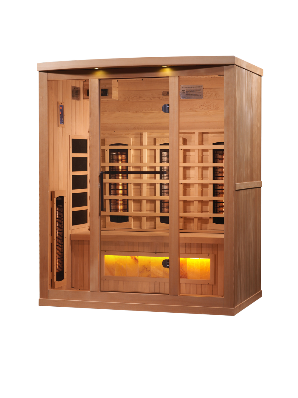 This Full Spectrum 8000 Reserve Series with Himalayan Salt is constructed of 100% Canadian Hemlock Fir and easily assembled by two adults. Heating panels feature PureTech™ Heating Technology that uses NEAR, MID and FAR wavelengths to deliver full spectrum heat while maintaining a near zero EMF standard.
