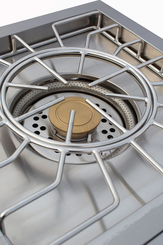 The Alturi Power Burner is a luxury gas component that is designed and built entirely in the USA. For unmatched power and performance, the Alturi Power Burner brings high BTUs of power to your outdoor kitchen to handle whatever culinary adventures you can imagine. Getting the quality and power of a gourmet kitchen range to your grill island, this built-in side burner from Summerset Grills allows you to enjoy all the benefits that cooking outdoors offers. Featuring the same classic design with commercial-grade features of the Alturi line of grills, the Alturi Power Burner is crafted with #304 stainless steel construction, heavy stainless steel grates, stainless steel lid, sleek design, and industry-top warranty. Variable temperature control allows you to rein in the firepower as needed, and the vibey LED lights add exciting ambiance and illumination. Bring on the tamale pot; this burner can handle anything for your family cookout and feast!